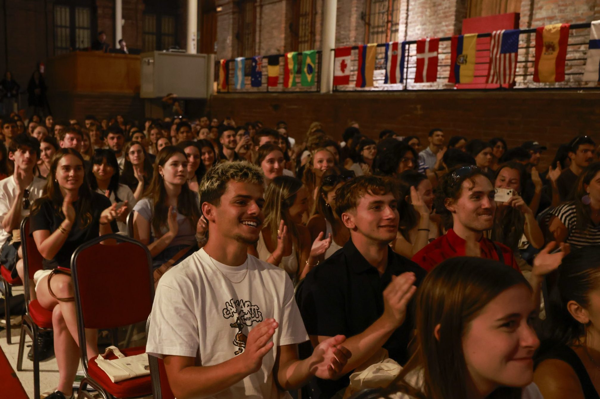 Es la primera vez que se reúnen estudiantes internacionales de pregrado y magíster en una ceremonia de bienvenida internacional. (Crédito fotográfico: Karina Fuenzalida, Vicerrectoría de Comunicaciones UC).